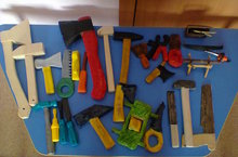 Предварительной работой была выставка (совместно с родителями) "Инструменты плотника". Наши родители- молодцы! Они использовали разные материалы: дерево, пенопласт, соленое тесто. Дети, играя с инструментами, проявили себя в професии плотника.