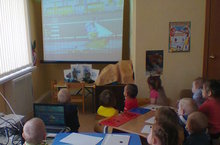 Тему занятия дети закрепили просмотром развивающего мультфильма про транспорт.