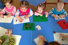 Дети слепили колеса и руль для автомастерской.