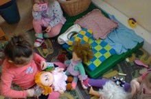 Дети строят мебель для кукол.
