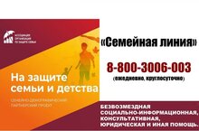 На все субъекты РФ открыт федеральный номер Семейной линии 8-800-3006-003, который работает ежедневно и круглосуточно, предлагая заявителям безвозмездную социально - информационную, консультационную, юридическую и иную помощь.