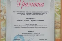 Ученица 8 класса Фатыхова Гульфина (учитель Иванова С.В.) заняла 3 место по технологии.