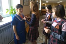 8 мая в школе стартовала Всероссийская акция «Георгиевская ленточка». Активисты СНТ в школе раздавали ленточки, памятки и разъясняли, что такое «Георгиевская ленточка», значение, правила ношения символов Акции. Их получили работники школы, учителя и учащиеся, и с гордостью прикрепили на свою одежду.