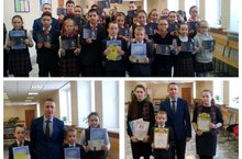 На очередной школьной линейке, после исполнения государственных гимнов, активные участники конкурсов и конференций были награждены грамотами и дипломами директором школы Макаровым Анатолием Владимировичем.