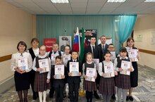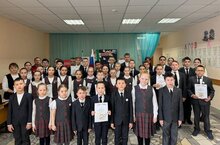 Активисты движения Первых учащиеся 5 класса читают "Бородино" М.Ю. Лермонтова -