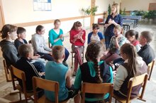 Воспитанники трудового лагеря после утренней зарядки и завтрака работали на пришкольном участке. Затем вожатая Макарова М.В. провела с ними игру-викторину "Люби и знай родной край". Поделившись на две команды, дети выполняли различные интеллектуальные, творческие задания. После сытного обеда на спортивной площадке играли в футбол. День пролетел незаметно.