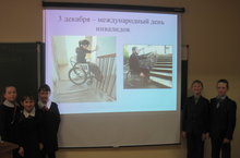 Сегодня в рамках проведения Декады инвалидов в нашей школе прошло мероприятие для 5 класса "Сострадание". Учащиеся узнали о том, каких успехов добиваются люди, потерявшие свою трудоспособность, как трудно им противостоять условиям сегодняшнего мира. Итоги учащиеся подвели сами, сказав, что все мы люди, независимо от того, инвалиды или нет.
