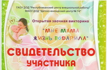 Подведены итоги республиканской викторины "Мне мама жизнь подарила!" Из нашей школы участвовали Дружков Ильнур(2 класс), Иванов Эдуард (3 класс), Низамиева Айсылу (3 класс), Маканова Эльвина(4 класс)(руководитель Хузина В.И.).Участникам высланы свидетельства. Поздравляем!
