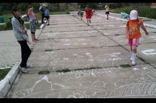 Сегодня, 8 июня 2012 года, наши дети рисовали на асфальте на свободную тему. Было очень забавно. Рисунки получились очень красивыми и яркими.