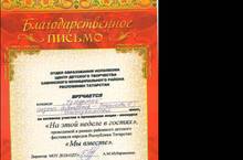 Поздравляем победителей!!! Команду "Удмуртия" , педагога -организатора Степнову Гузалью Хамидовну, за активное участие в проведении акции конкурса "На этой неделе в гостях", проводимой в рамках районного детского фестиваля народов Республики Татарстан "Мы вместе". Вы молодцы!!!