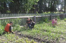 Учащиеся 5 класса в соответствии со специальным планом проходят летнюю трудовую практику. Работы на пришкольном участке хватает на всех: уход за цветочными клумбами, прополка сорняков на грядках и т.д.