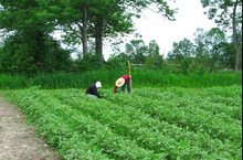 Наш технический персонал окучивает и пропалывает картофель.