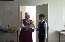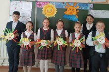 Классный руководитель 1 класса Галиева Ф. Ф. совместно с активистами "Движения Первых" изготовили цветы и подарили их учителям и сотрудникам школы. -