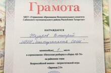 Учащиеся нашей школы приняли активное участие. Ученик 9 класса Назаров Дмитрий занял 1 место в соревновании "Неполная разборка и сборка АК-74" (рук. Гатиятов Р.Р.) -