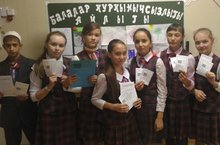 "Китапка икенче тормыш бүләк ит" акциясендә катнашып, 1 нче сыйныф укучылары мәктәбебез китапханәсенә китаплар бүләк итте.