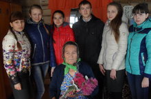 Укучыларыбыз һәм педагог - организатор Зиганшина Н.С. лаеклы ялдагы укытучылар һәм техник хезмәткәрләрне бәйрәм белән котлап,өйләрендә булдылар.