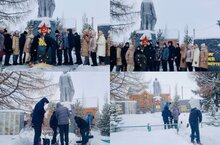 В связи с этой памятной датой, ученики 8 Б класса совместно с учителем ОБЖ и педагогом организатором очистили от снега обелиск павшим воинам и возложили венок. -