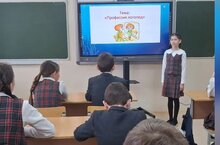 Сабитова Алия ,ученица 5А класса познакомила с профессией логопед. Особенностью этой профессии является то,что специалист этой области должен быть одновременно врачом,педагогом и психологом. Также Алия предложила игры,которые применяет учитель логопед. Одноклассники активно участвовали,пробовали себя в роли логопеда.
