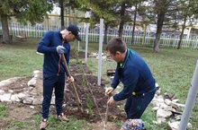 Мәктәбебез территориясен яшелләндерү, матурлау максатыннан, агач һәм куаклар утырту дәвам итә.