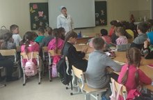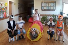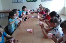 Укучылар белән Бөек Ватан сугышында һәлак булып калган авылдашларыбыз истәлегенә куелган һәйкәлгә салу өчен чәчәкләр ясалды. Төшке аштан соң "Кояш, һава һәм су - безнең якын дуслар!" исеме астында күңелле чара уздырылды.