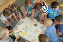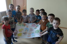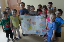 Балалар төрле рәсемнәрне иң элек ясадылар, шуларны буяп кистеләр. Ахырдан бергәләшеп ябыштырдылар.