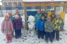 Сегодня на прогулке ребята старшей группы слепили снеговика, а потом поиграли в игру «Снеговик»: дети шагали друг за другом, выполняя следующие команды: по команде «Вьюга кружит!» дети кружатся на месте;по команде «Снег идёт!» дети присаживаются на корточки. Вернувшись с прогулки, дошколята ещё долго поглядывали из окон на своего снеговика. Ребята очень надеялись, что снеговик дождётся их до завтрашней прогулки и не растает.