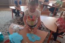Шаблон буенча кисеп,бизәкләрне завык белән тиешле эзлеклелектә ябыштырырга өйрәтү,матурлыкны күрә белергә,чиста-пөхтә эшләүләренә ирешү максатыннан бияләй бизәдек.