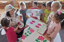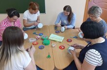Балаларны татар халкының милли бизәкләре белән таныштыру максатыннан, зурлар төркеменә йөрүче балалар читек бизәделәр.