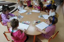 Кечкенәләр төркеменә йөрүче балалар рәсем эшчәнлегендә кар бөртекләрен ясадылар.