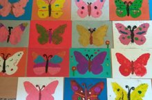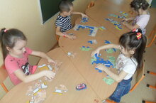 Пластилиннан зурлар төркеменә йөрүче балалар матур итеп, җәй бизәге булган, төрле төсле күбәләкләр ясадылар.