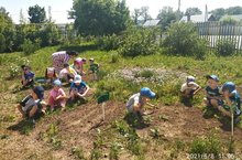 Җәен бакчадәа чүп үләннәрен утасаң гына, уңыш була. Тәрбиячеләр балалар белән берлектә бакча яны территориясен чүптән арындырып торалар.