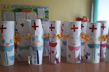 Хезмәт-дөньяда бары кешегә генә хас һәм бары тик ул гына лаек булган бәхет ул. Кулыннан эш килә торган тырыш кешеләрнең тормышта бәхетле, матур яшәүләрен һәммәбез күреп тора. Андыйлар нинди генә эшкә тотынмасын, аны җиренә җиткереп башкара. Ләкин кайберәүләр кечкенә генә кыенлыклар алдында да каушап, аптырап,югалып кала, ягъни аларга башка берәүнең ярдәме кирәк. Кеше менә шундый хәлгә төшмәсен, тормыш итүгә һәрьяклап әзерләнсен өчен, аңа балачактан хезмәт тәрбиясе бирү зур әһәмияткә ия. Хәзер балаларга бакчаларда эзлекле рәвештә хезмәт тәрбиясе бирелә: балалар төрле һөнәр серләренә өйрәнә, җәмгыятькә файдалы, җитештерүчән хезмәттә катнаша.Шул уңайда зурлар төркеменә йөрүче балалар, бүгенге көндә бик актуаль булган, табибларның хезмәтенә олы ихтирам белән карап, кәгазьдән табиблар ясадылар.