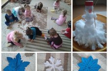 Без бүген кечкенәләр төркемендә карның төрле үзенчәлекләрен өйрәндек. Кечкенә генә Кар бабай да әвәләдек, кар бөртекләрен төзедек, төрле уеннар уйнадык.