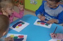 Кисеп ябыштыру шөгылендә балалар калфак бизәде.