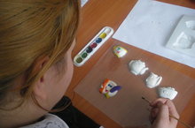 Сегодня учащиеся 8 класса Дорофеева Юлия и Степанова Кристина изготовили из гипсового раствора игрушки-магнитики.