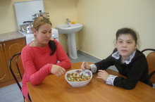 На уроках СБО учащиеся адаптируются к жизни. Сегодня воспитанники своими руками готовили салат из овощей и изучали этикет за столом.