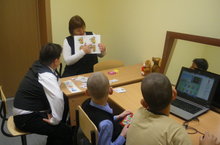 В коррекционной школе большое внимание уделяется коррекции речи. В связи с этим проводятся групповые занятия по логопедии Группы комплектуются по признаку однородности речевого нарушения. Основным материалом для занятий являются разнообразные карточки для развития лексико-грамматического строя и связной речи детей. Также используется ИКТ для развития речи. Учащиеся с интересом выполняют задания на логопедических занятиях. Просмотр фотографии.