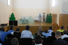 Сегодня, в рамках недели толерантности между педагогами и учащимися прошел КВН. Команды «Дуслык» и «Ялкын» соревновались в интеллектуальном ,в художественно-эстетическом творчестве. В упорной борьбе выиграла команда «Дуслык». В завершении вся школа танцевала флешмоб.