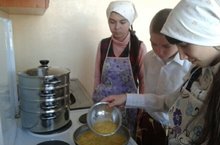 Бүген 6 класс укучылары хезмәт көнкүреш дәресләрендә токмач пешерергә өйрәнделәр.