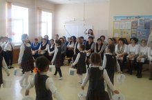 7 нче март көнне укучыларыбыз укытучы, повар, җыештыручы апаларын, бәйрәм белән котлап, җыр-биюләрен бүләк иттеләр.