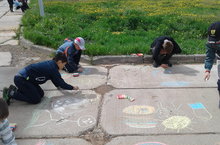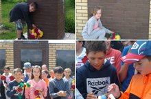 Продолжается неделя экологии. С утра провели экологический конкурс, потом играли в подвижные игру, участвовали в мастер-классе "Волшебные фантики", после обеда рисовали на асфальте экологический рисунок-призыв.