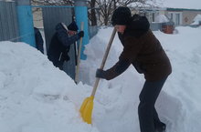 Тимуровцы продолжают свою работу. Сегодня они чистили от снега территорию обелиска, помогали пожилым людям.