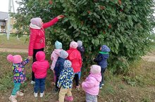 На прогулке мы с детьми наблюдали за рябиной, ее строением, рассмотрели ее листья и плоды. Ребята узнали много об особенностях рябины, ее пользе. Закрепили знания о том, что ягодами рябины питаются и кормятся птицы дрозды, снегири, тетерева. На прогулке было очень здорово. Ребята получили полезные и интересные знания о рябине, о многих ее секретах и полезных свойствах.