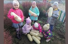 Матур көз килеп җитте!Көз җитү белән бакчаларда эшләр башлана. Яшелчә бакчасындагы хезмәтнең иң күңеллесе - уңышны җыю. Без дә балалар белән берлектә кабак, суган усентеләрен җыйдык. Балалар бик тырышып эшләделәр.