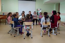 Бүгенге көн, көндәгечә, оештыру эшләреннән башланып китте. Иртәнге аштан соң, укучылар белән “Табышмаклар иленә” сәяхәт иттек, табышмактан белгән һәм башка хайваннар белән якынанырак танышу максатыннан, видеофрагментлар карадык. Укучыларга “җәнлекләр дөняьсында” бик ошады.