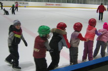 Два раза в неделю дети старшей и подготовительной группы посещают Ледовый дворец "Нарат". Они занимаются на кружке "Хоккей". По дороге закрепляют знания правил дорожного движения и правил поведения в общественном транспорте (в автобусе). -
