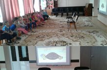 Зурлар төркемендә танып белү шөгыленең темасы :Әңгәмә. «Әкиятләр иленә сәяхәт» дип атала иде.Бурычлар итеп түбәндәгеләр билгеләнелде.1. Бергә уйный торган иптәшләренең фикере белән исәпләшә,бәхәсләрне гадел хәл итә белүчәнлек тәрбияләү.2. Балаларның иҗади күзаллауларын үстерү.3. Балаларда яхшы һәм начар төшенчәләрен формалаштыру, үзен һәм башкаларны дөрес бәяли белергә, уңай һәм тискәреякларны күрә белергә өйрәтүне дәвам итү.Шөгыль барышында балалар саесканнан хат алып укыдылар, аңа ярдәмгә килделәр. "Дөрес сайлап ал!" дидактик уены уйнап буталган әкият геройларын үз урыннарына урнаштырдылар. Әдәби викторина сорауларына дөрес җаваплар эзләделәр.Шөгыль ахырында алар заманча әкияттән килгән кунаклар белән очраштылар. "Смешариклар" белән очрашу аларга иң кызыклы булып тоелды. -
