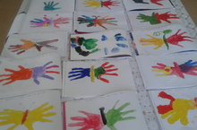 Дети старшей группы на занятии рисования прошли тему: "Наши руки не для скуки".В начале занятия беседовали о руках человека,прослушали стихотворение М.Пляцковского, позже познакомились с возможностью создания образов, символов и эмблем на основе одинаковых элементов.Потом решили создать бабочку.