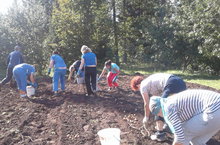 Бүген бакчабызның барлык хезмәткәрләре бәрәңге алу өмәсенә чыкты. Көн бик матур һәм кояшлы иде. Бәрәңге уңышы да яхшы булды.