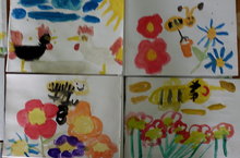 Уртанчылар төркеме балалары кисеп ябыштыру шөгылендә язгы чәчәкләр турында белемнәрен тулыландырдылар. Уз куллары белән кәгазне кисеп ябыштырып тәкыя дә ясадылар. Үзләре ясаган тәкыяләр балаларга бик ошады.